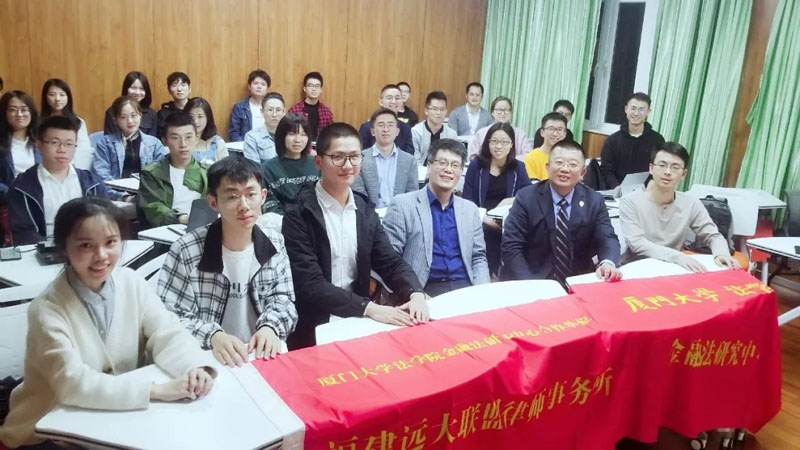 两个小时很快就过去了,因为时间有限,还有很多同学没能提问。陈继东律师在提问环节结束后做总结性发言,并期待福建远大联盟律师事务所,yl8cc永利官网和陈中坚律师在学术研究上有进一步合作。论坛最后,大家合影留念。