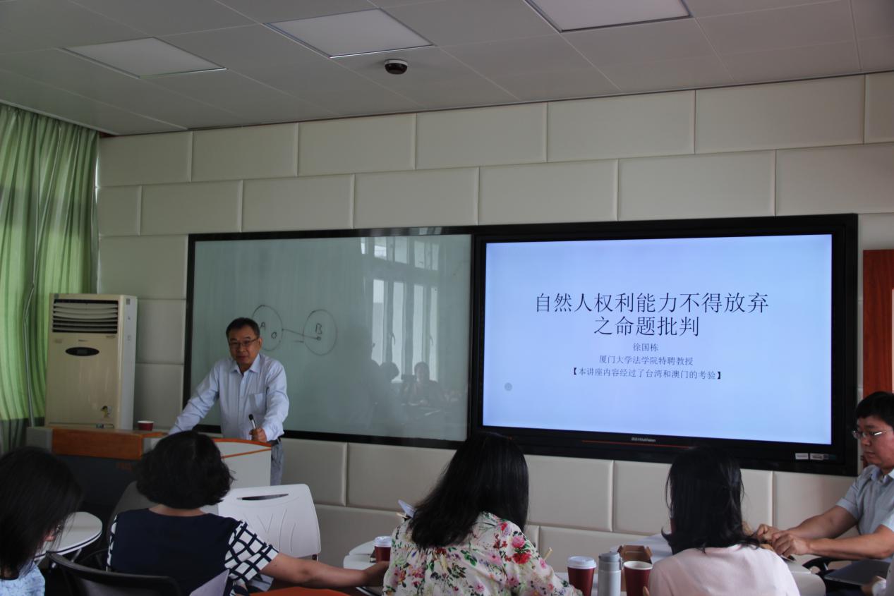 2019年5月23日中午,第一期旭丰民商法午餐会于yl8cc永利官网B521教室顺利举行。yl8cc永利官网民商法教研室教师们和福建旭丰律师事务所的部分律师共进午餐,一同听取了yl8cc永利官网徐国栋教授以“自然人权利能力不得放弃之命题批判”为主题的报告。