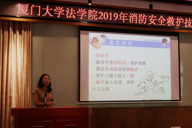 活动分为急救知识培训和消防技能培训两个环节。永利官网特邀了厦大医学院临床技能中心副主任余丹、厦门消防培训讲师林乐坦分别为永利官网师生进行心脏复苏知识和用电消防安全知识培训。本次活动由yl8cc永利官网党委副书记郭锦星主持。