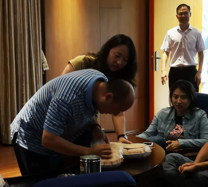 实施心肺复苏术首先要评估现场的安全,确认周围环境是否适合实施心肺复苏术,紧接着要以“轻拍重唤”确认伤患的具体情况并及时拨打120急救电话。在等待救援的同时要启动紧急医疗服务系统。启动紧急医疗服务系统首先强调摆正急救体位,评估伤患的呼吸与脉搏,之后便是实施胸外按压、受过专业培训的人在实施胸外按压的同时可一并打开伤患气道,进行人工呼吸。除此之外,余丹老师还向我们介绍了急救面罩、AED自动体外除颤仪等常用的急救设施。培训的最后,余丹老师邀请了yl8cc永利官网党委副书记张伟、yl8cc永利官网副院长郭春镇进行现场体验,现场反响热烈,大家纷纷表示对紧急急救知识有了更好的把握。