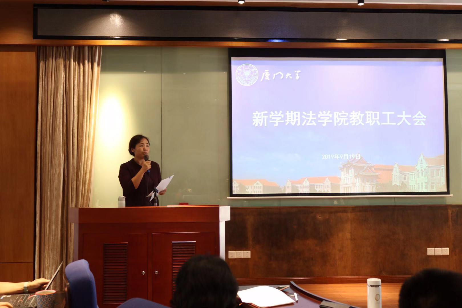宋方青院长在会上作发言。她首先介绍了新一轮学科评估面临的形势,强调学院更加注重办学质量的提升,进一步提升学院影响力。她传达了学校领导干部暑期会议精神,强调学院要继续重视师德师风建设,打造具有优良师德的高水平教学队伍;其次,要严格遵守教学纪律,特别是要严格杜绝教学事故的发生。她对学院教师在科学研究方面做出的辛勤努力和产出的优异成果表示肯定,希望学院全体教师再接再厉,继续产出高水平科研成果,并且鼓励教师们积极投身社会服务工作,共荣共进,齐心协力,以优异的成绩迎接新一轮学科评估。