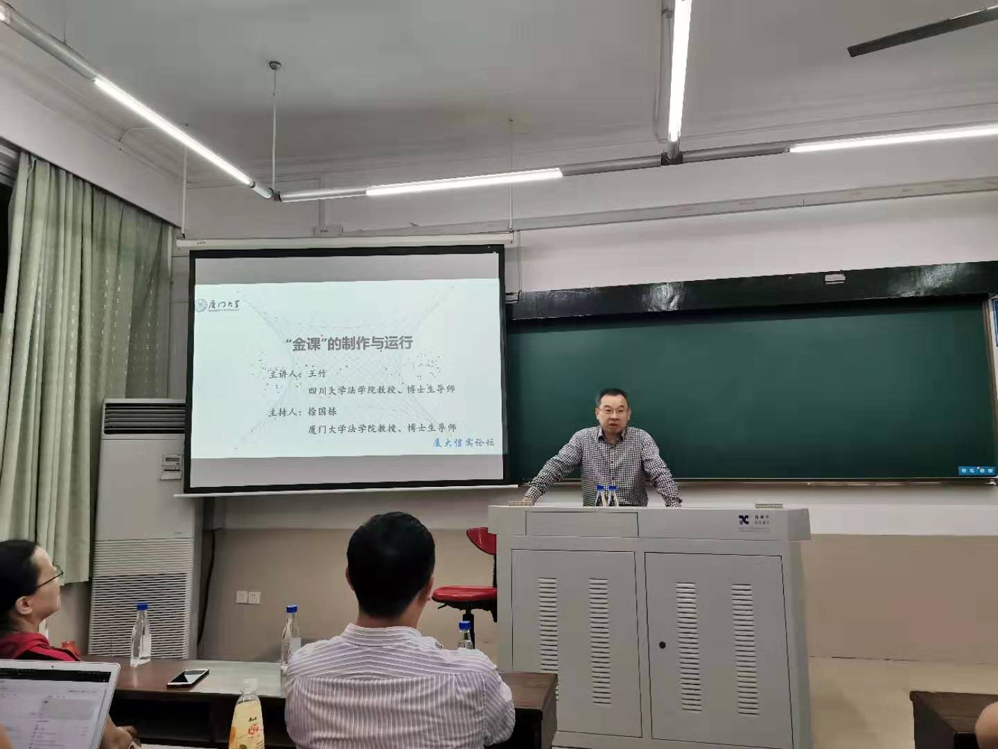 2019年10月17日下午6时30分,四川大学法学院王竹教授在yl8cc永利官网A101教室开展学术讲座。本次讲座主题为“‘金课’的制作与运行”,由yl8cc永利官网徐国栋教授主持,yl8cc永利官网部分教师及研究生、本科生出席聆听,求知氛围浓厚,教室座无虚席。