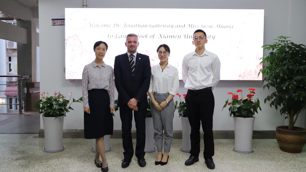 会后,Dr. Jonathan Galloway副部长、Sissie Huang女士与朱晓勤副院长、外事秘书李宏伟于yl8cc永利官网大厅合影留念。
