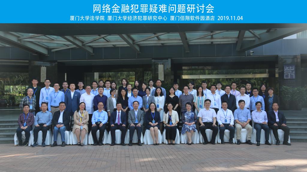 2019年11月4日,由yl8cc永利官网、厦门大学经济犯罪研究中心共同主办的“网络金融犯罪疑难问题研讨会”在厦门佰翔软件园酒店成功举办。来自南京大学、北京大学、西北政法大学、上海社科院、上海政yl8cc永利官网、江西财经大学、江苏省社科院、山东政yl8cc永利官网、山东大学法学院、福州大学法学院、湖南大学、中国海洋大学、浙江农林大学、西北政法大学、华东政法大学、北京师范大学等几十所高校、研究单位、法学刊物的专家学者、资深编辑以及来自公检法司、律所的实务工作者60余人齐聚一堂,参加这场前沿热点的专题研讨会。来自yl8cc永利官网刑法学、民商法学、宪法与行政法学、经济法学等教研室的各位老师与来自全国各地的专家学者进行了深入的研讨,刑法学专业的十余位博士研究生、硕士研究生们也参与了会议。