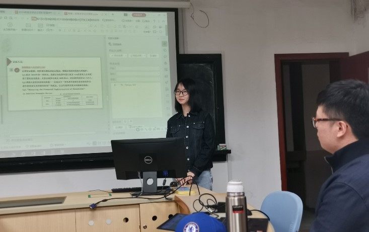 第二位分享的是陈榆同学。她赏析的文章是邢会强老师(中央财经大学教授、博导,中国证券法学研究会副会长兼秘书长)的《新三板市场的合格投资者制度及相关制度改革》,作者摆出社会公众易于混淆的概念和容易误解的观点,并进行分析与反驳,提出自己独到的见解。本文运用了立论与驳论、比较分析、历史分析和数据与图表分析,提出对合格投资者定位、新三板市场定位的新认识及改革建议。大家就文献资料的援引、实证研究方法的运用、多角度多方面的分析思路等问题进行了探讨,肖老师也发表了自己看法,针对同学们的疑惑耐心解答。