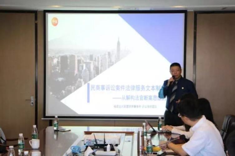在简单参观完律所后,邹亿主任再次对金融法中心师生的到来表示热烈欢迎,也希望大家常来多来,同学们毕业时并将远大所作为一个就业起点的重要选择之一;刘志云教授也回顾了双方从2015年建立共建金融法中心与“金融法学科”的合作关系以来取得的各项成绩,并对远大所的长期支持表示由衷的谢意。双方表示,继往开来,未来一定会共建的更好。之后,邹亿主任并以“民商事诉讼案件法律服务文本制作指引—从解构法官断案思维的角度”为题为同学们带来一场别开生面的讲座。