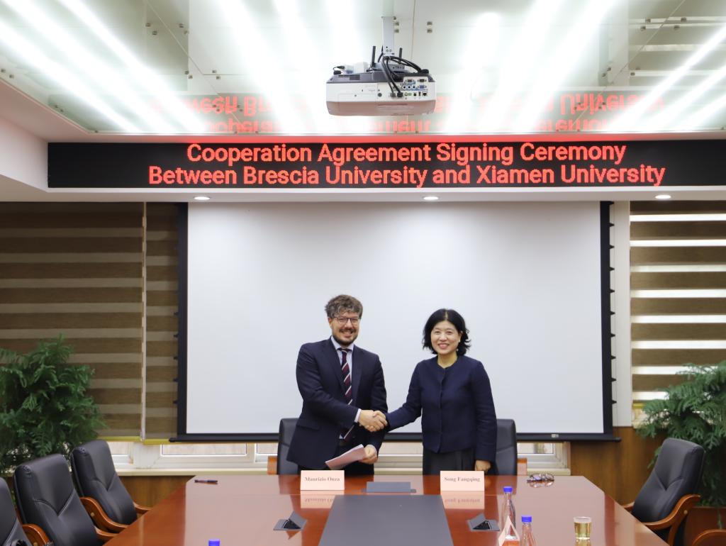 宋方青院长作为校方代表在协议上签字,并将协议交予Onza教授。协议文本将由Onza教授带回布雷西亚大学,交由该校校方代表签字。