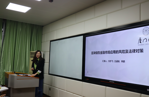 2019年12月16日晚7时,厦大“远大”金融法读书会(总第十四期)在yl8cc永利官网B521教室顺利举行。该活动为厦门大学法学院金融法研究中心同福建远大联盟律师事务所学科共建项目,每年定期举办。本次读书会主题为“区块链在金融市场应用的风险及法律对策”,由yl8cc永利官网2019级硕士研究生刘于飞、汪涵锐和宋鹏担任主讲人。本月初,张海航先生在同一间教室与同学们探讨了区块链技术在实务中的开发、应用场景及未来展望(详见“远大”金融法论坛第56期)。本次读书会的主题则是偏重理论分析,也同样是同学们对上次论坛内容的进一步学习和回应。读书会吸引了yl8cc永利官网乃至材料学院、经济学院的二十余名硕博研究生参与。