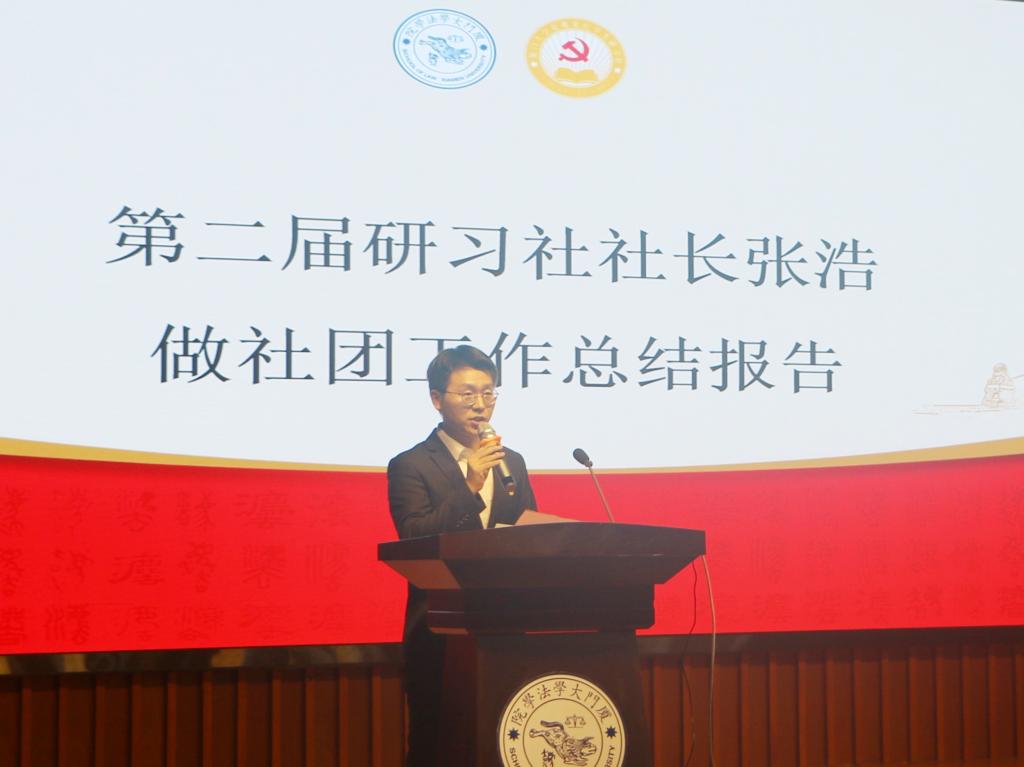 本次换届大会在国歌声中拉开序幕。首先,厦门大学党规党纪学生研习社第二届社长张浩同学汇报工作总结并放映回顾视频,他从“统筹研究生党支部建设,组织开展主题教育活动”、“精心打造社团品牌活动,全面展现青年党员风采”、“组织开展系列学习讲座,扎实推进理论学习研讨”、“深入基层开展实践育人,追寻感悟共产党人初心”四个方面汇报了研习社的工作情况,并总结分析了研习社上一年取得的成果、存在的不足及未来的改进方向,期盼新一届研习社骨干和社员们不忘初心,砥砺前行,努力凝聚青年学生党员力量,将青春梦想融入实现中华民族伟大复兴的中国梦中。