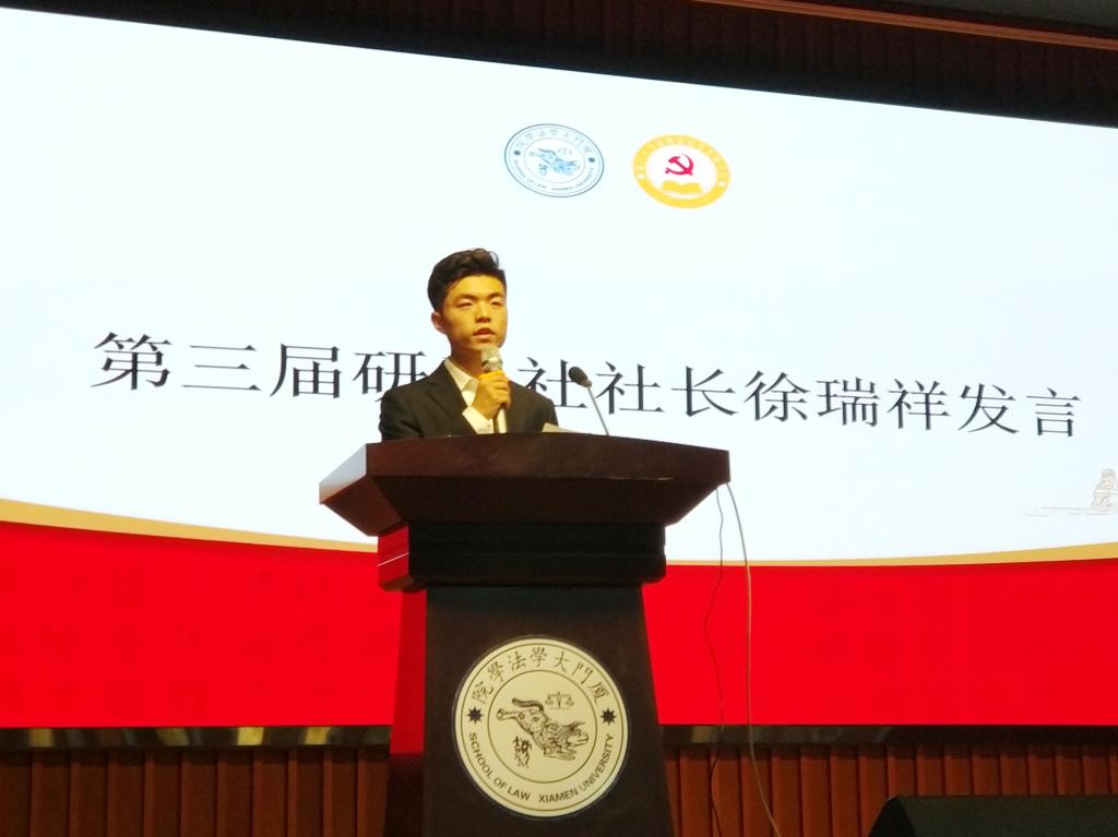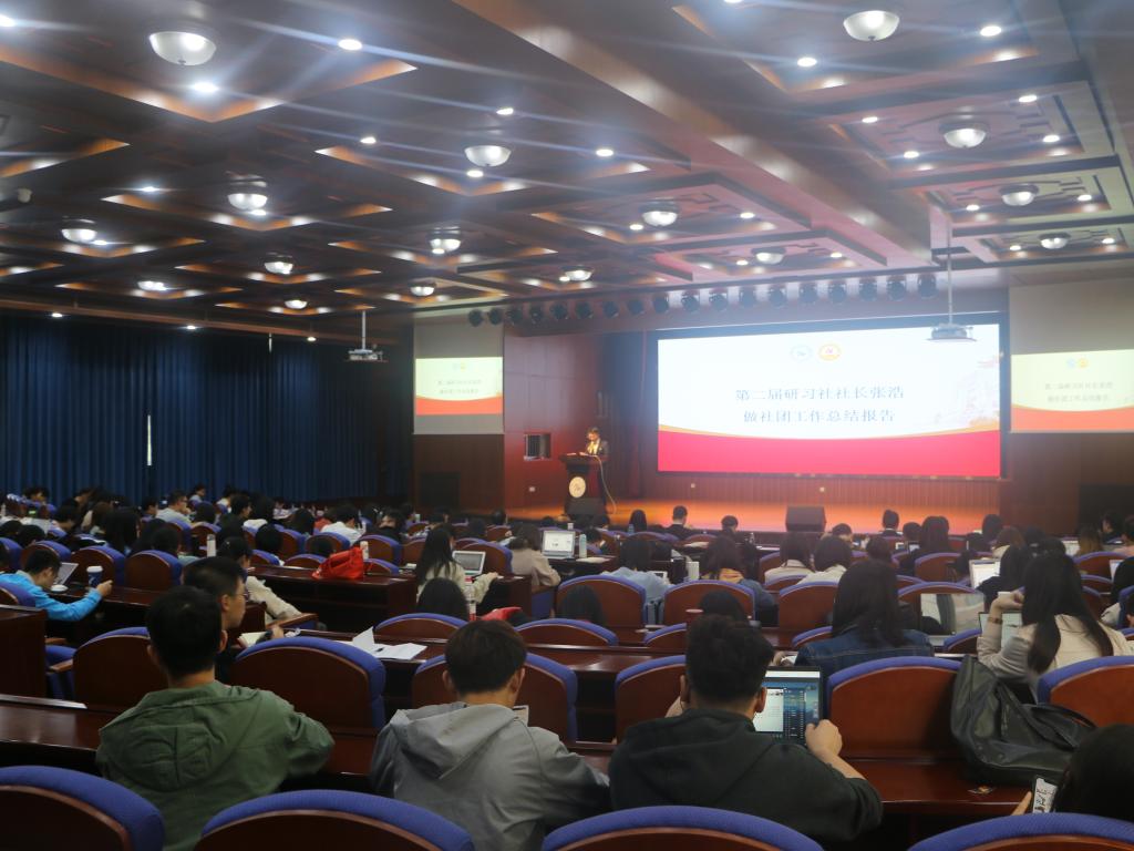誓词宣誓后,新一届社长徐瑞祥同学代表研习社第三届骨干成员进行发言,从组织、理论、实践三个方面对研习社接下来一年的工作进行了规划,并承诺将继续丰富社团宣传途径,争取提升研习社的影响力。