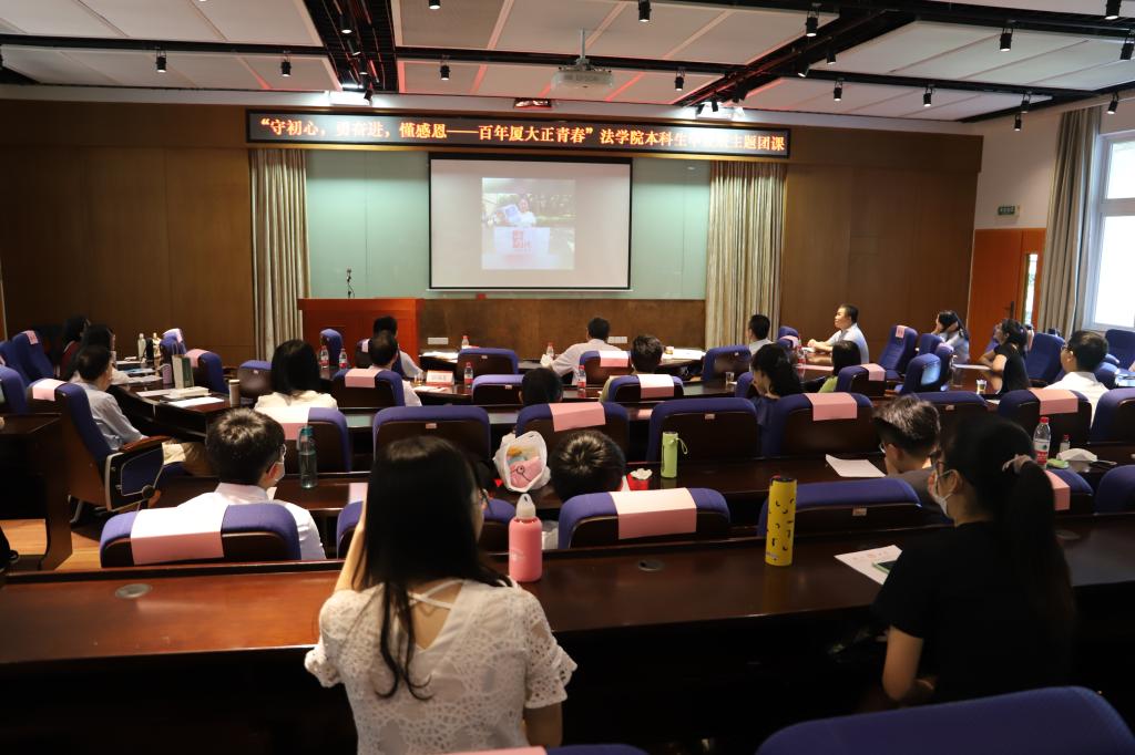 同学们的分享和三位老师的寄语引起了支部团员深深的共鸣与思考。课后,团支部成员吴双同学动情的说:“这样的团课很有意义,不仅有四年同窗情谊的温暖,更有长辈们谆谆教诲,让我更加坚定了自己的法学梦想,我将继续努力,毕业后认真工作,争取为我国法治建设作出自己的小小贡献,也为厦大新百年增添光彩”。