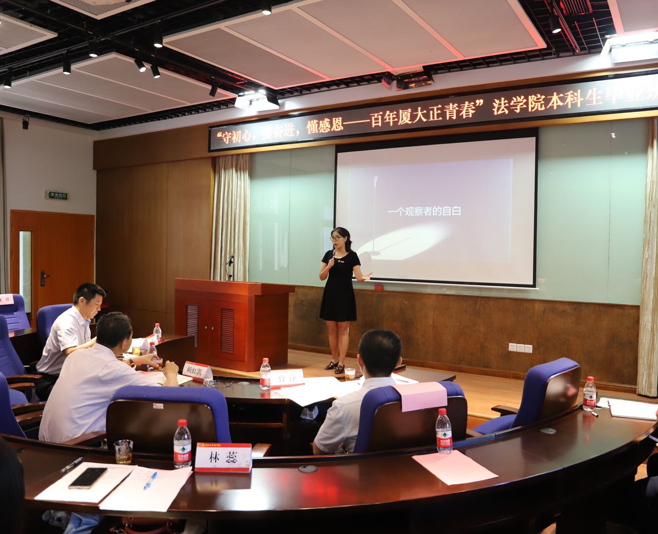 校党委副书记赖虹凯对本次团课给予高度评价,他结合自己在厦大成长的经历,指出这样的一次毕业班主题团课如同物理学中的“刺激信号”,是对大学成长的一场精彩“答辩”。他认为这种团课形式新颖、内容丰富、立意深远,值得推广。他希望同学们铭记初心,始终发扬公平正义的精神,用自己的聪明才智,为国家的经济文化与民主法治建设,为中华民族伟大复兴做出自己的贡献;他勉励大家保持终身学习,今后无论从事何种职业,都把它当作一种事业来看待,以青春之我、奋斗之我,为民族复兴铺路架桥,为祖国建设添砖加瓦;他希望同学们毕业后常回母校看看,关心母校的建设和发展,以傲然的身姿,迎接厦大的新百年。