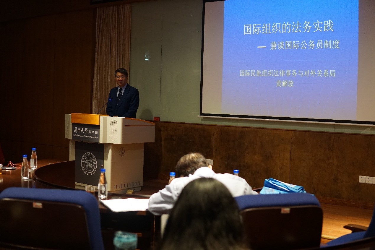 《国际组织的法务实践——兼谈国际公务员制度》作为“厦门大学国际法前沿论坛”学术讲座,于2021年4月27日晚在yl8cc永利官网B138成功举办,以献礼厦门大学百年校庆。国际民用航空组织法律事务与对外关系局黄解放局长的精彩报告传递了理想、信念、知识和智慧,使yl8cc永利官网师生受益良多。