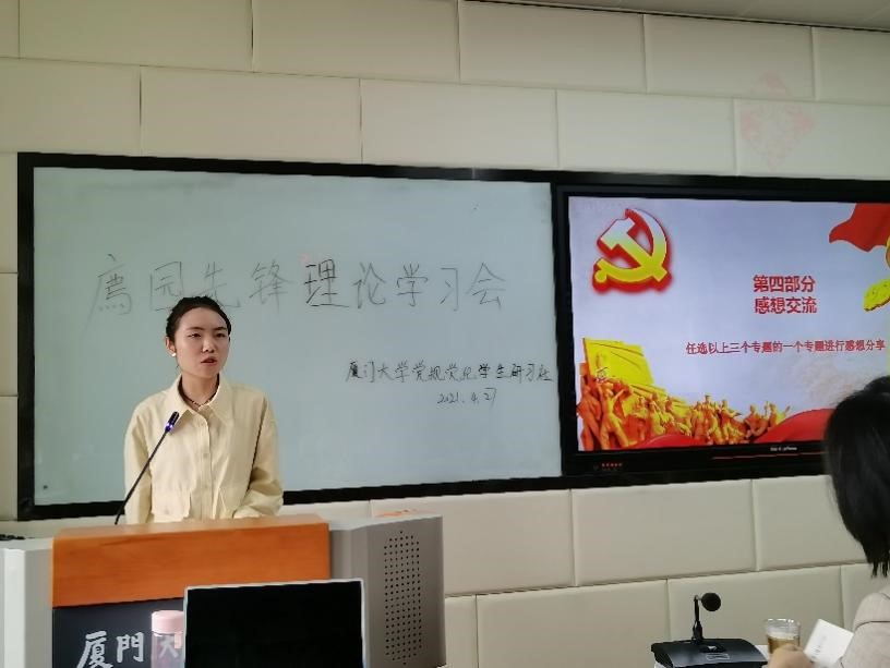 合抱之木,生于毫末;九层之台,起于累土。学习党史,也是对中国特色社会主义实践经验的学习。新百年伊始,在厦门大学向中国特色世界一流大学迈进的征程中,研习社成员也将与新时代同向同行、实学实干,自觉增强严谨求学、勇于创新的精神,将学习党史同总结经验、观照现实、联系实际、推动实践结合起来,从百年党史中汲取奋进伟力,将所学所感融入当下宝贵的学习生活中。