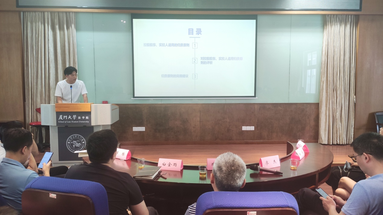 第四位主讲人陈威同学探讨的是“信息披露违法下控股股东、实际控制人民事责任归责原则的问题”。