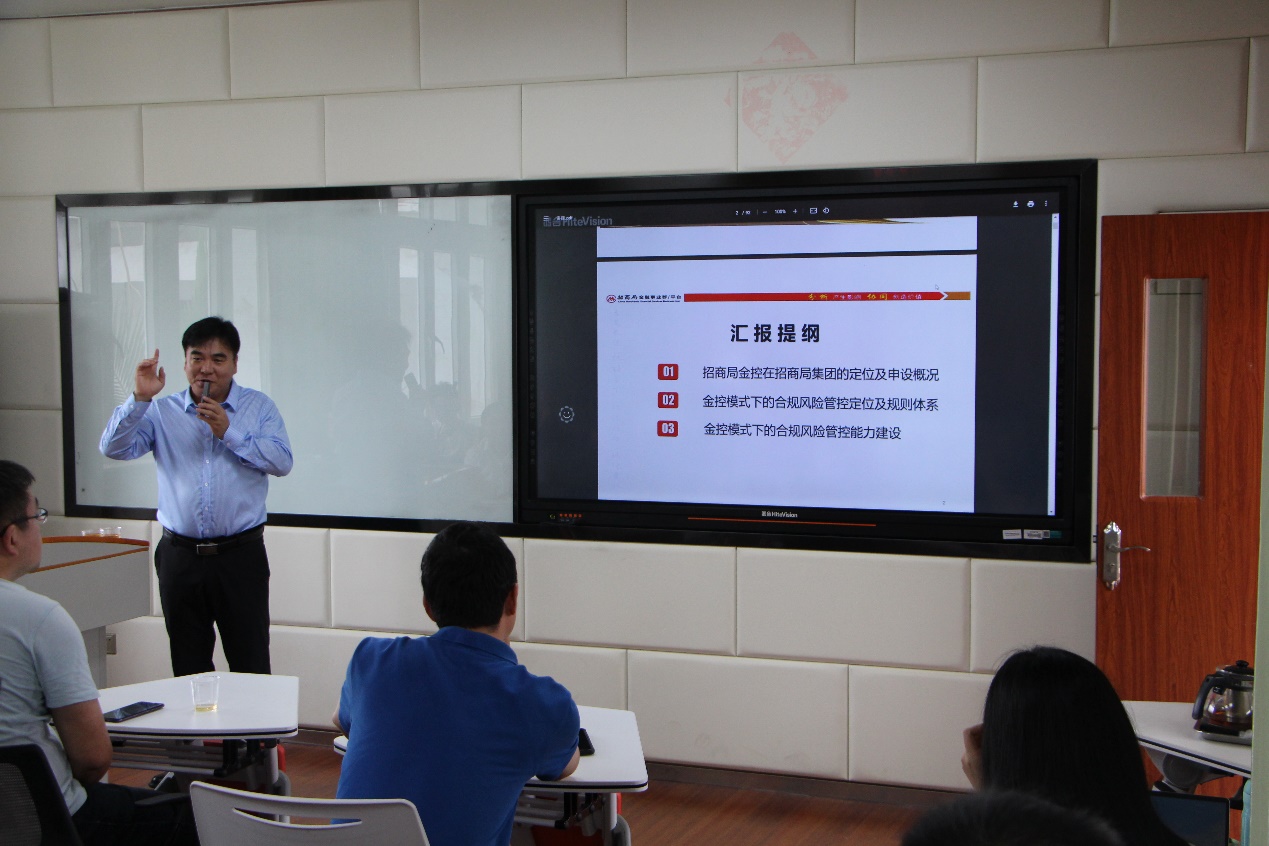 石桐灵博士从三个部分进行了精彩的讲解。第一部分石桐灵博士简单介绍了招商局金控在招商局集团的定位及申设概况,阐明在金融控股集团模式下,“产融结合”、“融融结合”所面临的机遇与挑战,尤其是“以融促产”的现实意义和关联交易等法律规制所面临的实际问题,同时,介绍了金融控股集团模式下全面风险管理体系的构建及数字化赋能方面的概况及未来发展趋势。