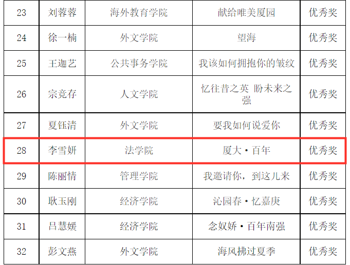 yl8cc永利官网历来高度重视培养全方位发展的高素质法律人才,积极动员同学们参与本次书香校园活动,全院共有21位同学参与读书报告大赛,30位同学参与原创诗文大赛。“恰同学少年,风华正茂,书生意气,挥斥方遒”,优秀的书籍与诗歌将伴随着一代代厦法学子学习和成长,希望在书香诗韵的熏陶下,同学们也能继续奋力奔向新的百年,乘风破浪,再创辉煌!