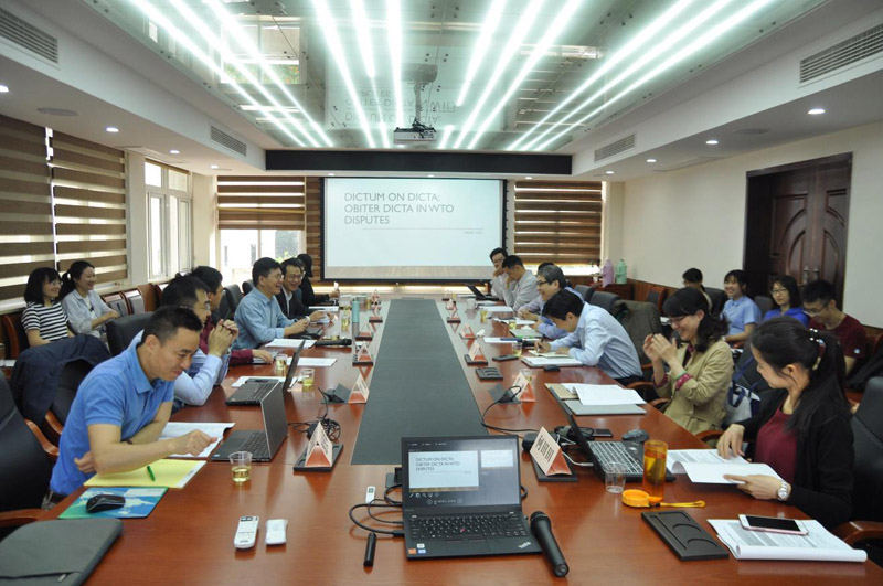2018年4月29日上午,新加坡管理大学法学院副教授高树超做了“WTO争端解决机制中的遵循先例原则与附带意见:对上诉机构危机的比较法解读”的专题报告。yl8cc永利官网蔡从燕教授主持本次专题报告。