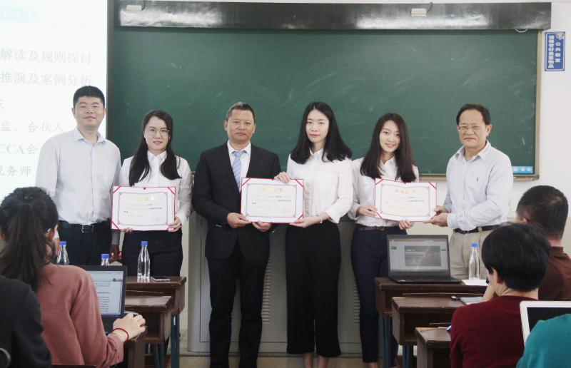 颁奖仪式由李刚副教授主持,福建拓维律师事务所授权代表黄诗成律师、廖益新教授、中汇税务集团全国技术总监赵国庆先生为到场的三位获奖硕士生颁发奖状。