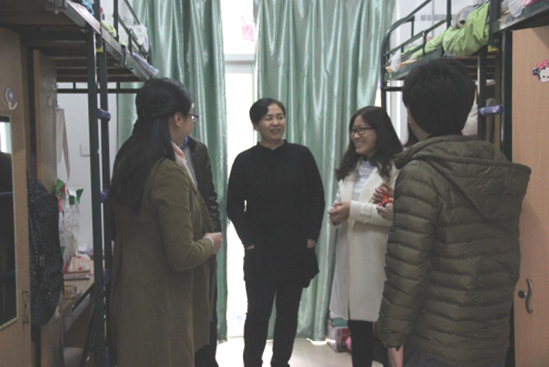 走访宿舍过程中,老师们详细询问了同学们的留校原因及寒假安排,并为他们提供学习和工作方面的意见和建议。学院领导一再叮嘱留校生提升安全意识,提高防范能力,有任何困难都要及时向学院老师反映,常跟家人打电话报平安;同时要求留校生放松不松懈,郭锦星副书记反复强调要注意合理安排作息,保持宿舍整洁。访问期间,师生之间有聊不完的话题,慰问气氛其乐融融。留校学生对学院的关