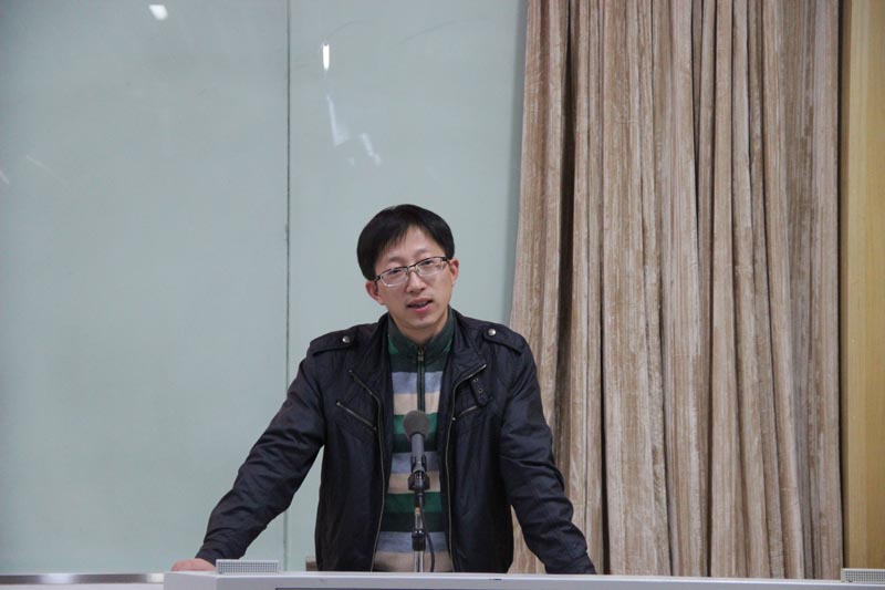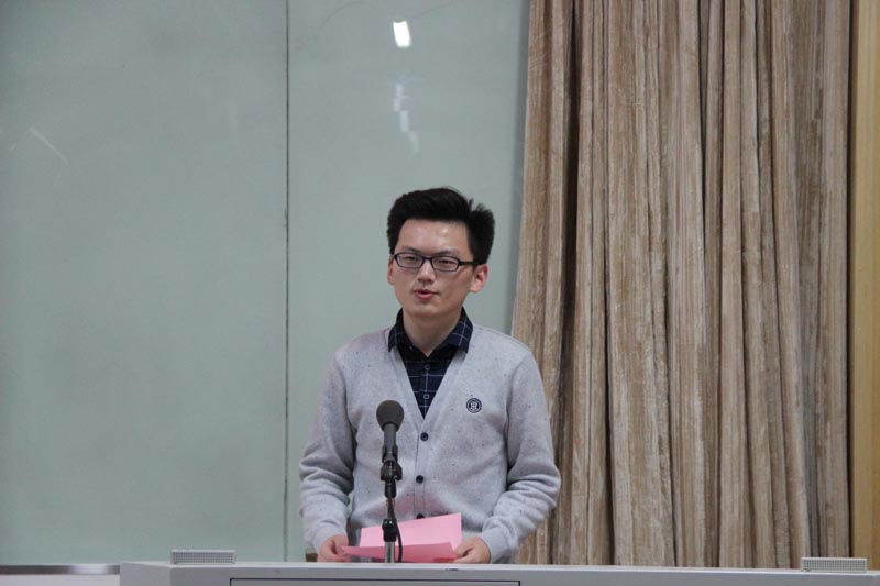 团委书记高斌上台发言,引用王国维的“读书三境界”,提出在社会实践中应懂得比较和思考,返璞归真,知行合一,结合社会热点问题进行调研,同时表达了对同学们的真切期望。