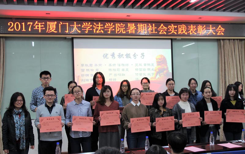 大会公布了优秀微电影奖、优秀摄影奖、优秀调研报告奖、优秀论文奖、实践队一二三等奖及优秀积极分子奖名单,并由到场嘉宾为其颁奖。分别部居实践队、软法之治厦食实践队、童心未泯实践队等共15个暑期社会实践队伍和李秋君、华芮雪、陈榆等18名优秀积极分子受到大会表彰。颁奖之余,大家一同欣赏了优秀微电影展播,共同感受了光影下的社会实践。