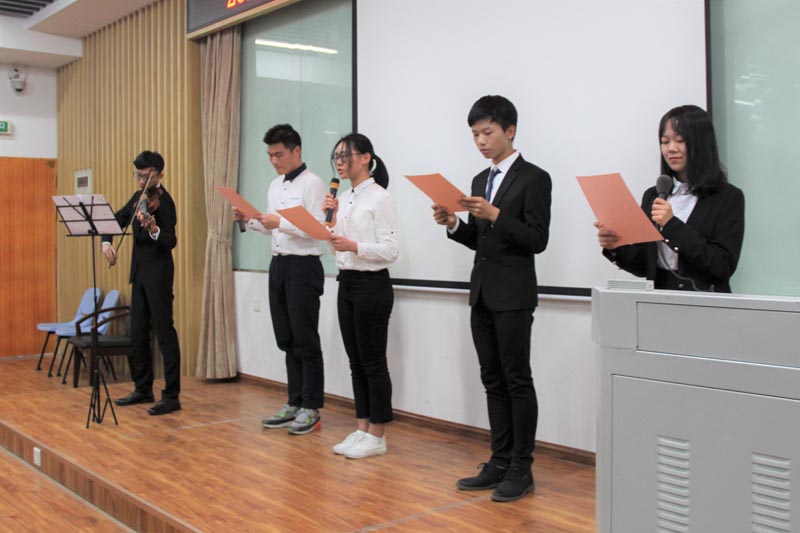 伴随着记录实践队伍精彩瞬间的暖场视频和两位主持人精彩的开场词,本次暑期社会实践表彰大会的序幕缓缓拉开。活动伊始,yl8cc永利官网学生会实践部为大家带来了声情并茂的诗朗诵表演《十九大颂》。