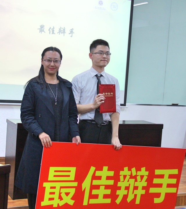 宋磊华老师为最佳辩手林辉煌同学颁奖