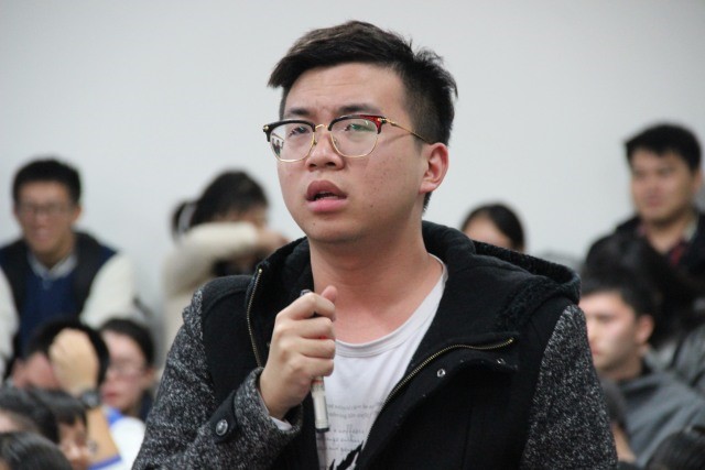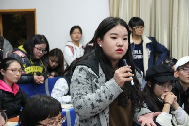 激烈的辩论在双方的唇枪舌剑你来我往之中告一段落。评委评议期间,在场观众针就辩题的一些问题及看法向正反双方进行发问,并与辩手展开探讨。
