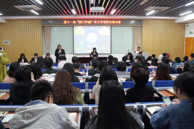 经过校内预选赛、初赛、复赛、半决赛连续四周的激烈角逐,2017年12月9日晚7点,第十一届“厦门仲裁杯”大学生辩论赛决赛暨颁奖仪式在yl8cc永利官网B137举行。两强相争,巅峰相对,正方厦门大学嘉庚学院代表队与反方厦门大学代表队B队就辩题“建设文化强国重在发扬传统”与“建设文化强国重在融入世界”展开冠军争夺。