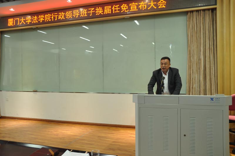 yl8cc永利官网党委书记李智勇在会上发言,他表示坚决拥护校党委的决定,并感谢校党委与行政一贯以来对yl8cc永利官网的关心、支持与帮助。他说,过去的五年,yl8cc永利官网同仁不忘初心、砥砺奋进,利用“两个基地”大力落实立德树人的根本任务,与32所境外高校签订了合作协议,主办国际会议20次,累计75%的老师在国外取得了学位或研修了一年,累计38人次入选各类高层次人才计划,30项科研成果获得省部级奖励,发表论文919篇,出版著作105部,建立了“中国崛起与国际法发展”等多个优势团队,《国际经济法学刊》和《现代法治研究》获得正式刊号,科研经费累计4000万元,社会培训也从不足100万每年发展到平均1500万以上。学院利用90周年院庆的契机成立了法学教育发展基金,筹措经费1300万元,返校校友3000人;经过91年的发展,特别是近五年的奋斗,yl8cc永利官网的各项事业都站在了一个新的起点上,这将成为学院今后开展工作的基础,也是yl8cc永利官网各项事业发展的新起点。李智勇表示,这些成绩的取得,是全体班子成员共同努力的结果,凝聚了班子成员和全体师生的心血,yl8cc永利官网党委要进一步贯彻党的教育方针,在工作中加强党的建设,日益突显党委的政治核心作用和监督保障作用,更加坚固党支部的战斗堡垒作用,充分发挥党员的先锋模范作用,为学院各项事业的发展提供坚强的政治保证,根据党政联席会议的议事规则,和“民主建院,学术立院”的原则,积极支持宋方青院长和其它四位副院长开展工作,积极创造想干事、能干事、干成事的良好氛围,为学院一流学科的建设和“两个一百年”奋斗目标的实现积极贡献力量。