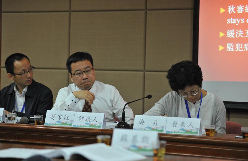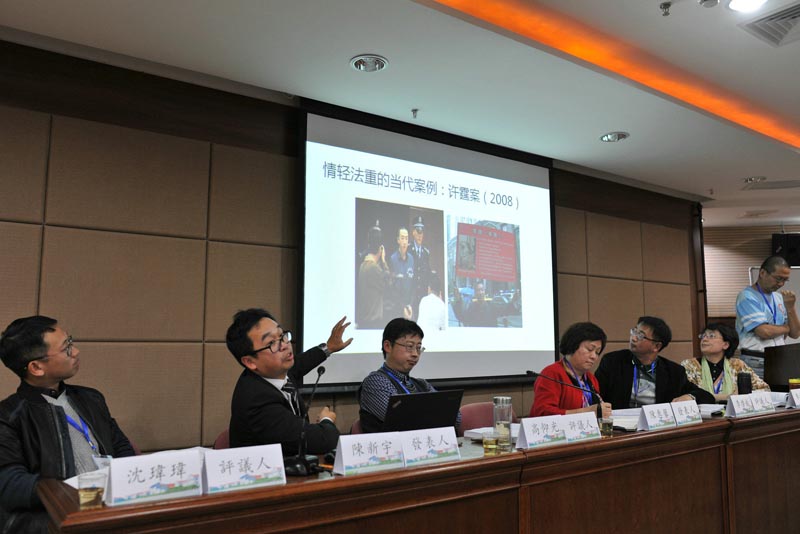 第六场报告会由《江苏社会科学》杂志社钱继秋编审主持。第一位报告人是美国塔尔萨大学教授、历史系主任步德茂,报告题目为《律乃一成不变,例则随时变通——从有关孝顺的条例看十八世纪清朝的刑事司法系统》,透过有关孝顺的条例及相应司法活动诠释清代律例之关系;第二位报告人为中山大学历史系海丹副研究员,报告题目为《晚清“冤案”信息的传播与公众认识的形成——以一起滥刑毙命案为线索》,以光绪十七年安徽庐江县知县因滥用刑罚导致两人死亡的一起案例为研究对象,通过比较多种史料对此案的不同记载,展示官场相关人士对案件信息的传播控制,以及这种控制所导致的媒体对案情报道的前后出入,公众由于无法获得完整信息而形成的不同评价;第三位报告人是华东政法大学法学院陈灵海教授,报告题目为《诗歌中的法律史——< 抱冲斋诗集>所见清代刑官生涯志业》,通过对清代嘉庆、道光时期的满族刑部官员斌良之诗歌集《抱冲斋诗集》的研究,立足于科举以经学诗文为核心、律学不受重视的时代背景,细致描述清代刑官喜好诗酒、倦怠律学之日常生活,从而提示不宜高估清代刑官的律学素养。香港中文大学历史系教授邱澎生(第一位与第三位报告的评议人)、中国社会科学院法学研究所孙家红副研究员分别进行评议。