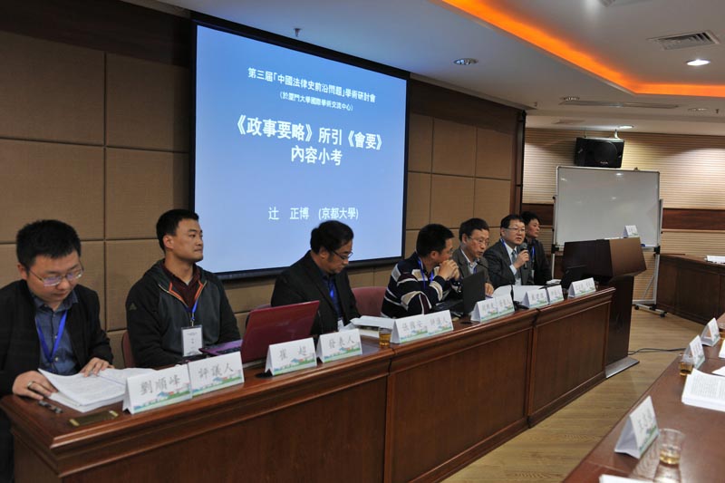 第四场报告会由湖北民族学院yl8cc永利官网院长徐铜柱教授主持。第一位报告人是日本中央学院大学法学部水间大辅副教授,报告题目为《魏晋南朝对尸体所加制裁的规范化与“故事”》,讲述魏晋南朝时援引前代崔杼、归生、王莽、陈叔陵等“故事”“先例”,以实现对叛逆者的尸体进行制裁的事例及其机理,并对这种“故事”的发展及其规范化进行解释;第二位报告人为yl8cc永利官网姚周霞博士生,报告题目为《转型前后北魏经济变迁对法律的若干影响》,指出随着北魏经济由游牧向农业的发展,法律也发生相应变化,不孝罪和贿赂罪得以确立,盗罪中也逐渐偏重于对窃取公共财物的处罚;第三位报告人为京都大学大学院人间·环境研究科辻正博教授,报告题目为《< 政事要略>所引< 会要>内容小考》,首先指出《政事要略》所引《会要》的记录,是以唐德宗时期苏冕所编纂的《会要》为基础的,随后参考杜佑的《通典》及其他唐代史料对《会要》进行校订,并将校订后的文本与王溥《会要》进行比较;第四位报告人是云南大学滇西研究院胡兴东教授,报告题目为《唐开元六典的传播及对中华法系形成的作用》,通过阐述唐开元六典的形成、传播以及在之后朝代的继受和适用,展示其对“中华民族”、“中国”国家概念和中华法系的形成所起的重要作用;第五位报告人是贵州师范大学法学院崔超讲师,报告题目为《贵州文斗苗族佃契历史形态的法考察》,通过对325份贵州文斗苗族佃契的数据刊布分析,提炼出贵州文斗苗族佃契的典型特点及主要类型,并阐明当代法制对其相关内容的吸收。南京师范大学法学院董长春副教授、武汉大学法学院钟盛讲师、上海师范大学古籍所戴建国教授、华侨大学法学院张国安教授、湖北民族学院yl8cc永利官网刘顺峰讲师分别进行评议。