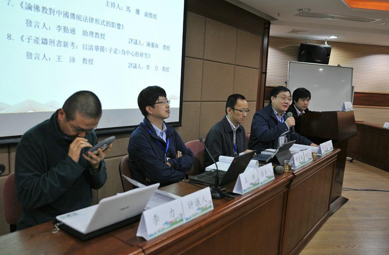 第三场报告会由yl8cc永利官网马腾副教授主持。第一位报告人是湖南大学法学院李勤通助理教授,报告题目为《论佛教对中国传统法律形式的影响》,从问答体、义疏体、语言特征、图表形式等方面论证佛教对中国传统法律形式的影响;第二位报告人是华东政法大学法学院王沛教授,报告题目为《子产铸刑书新考:以清华简< 子产>为中心的研究》,通过《左传》与《清华大学藏战国竹简(六)》之《子产》篇中对子产铸刑书一事记载的褒贬对比,说明二者之间的评价矛盾实际是春秋战国之际两种思想碰撞的体现,考释《子产》篇国野之分与令刑内涵之余,揭示法律的一元与多元之争才是子产铸刑书争议的实质;第三位报告人为湖南大学法学院李婧嵘助理教授,报告题目为《秦汉刑事法律中的数罪形态及刑罚原则》,报告基于秦汉简牍研究,分析秦汉刑事法律中的不同罪数形态,并用现代刑法学的概念及原理加以归纳;第四位报告人为日本佛教大学文学部宫泽知之教授,以《西汉钱法的变迁》为题,在简述战国至秦的货币流通情况后,详述汉帝国在继承秦朝钱币状况基础上的货币发展历程,并着重说明钱币标准化与民间铸币之间的关系。华东政法大学法学院陈灵海教授、华中科技大学法学院李力教授、河南财经政法大学法学院朱潇讲师、西北政法大学刑事yl8cc永利官网闫晓君教授分别进行评议。