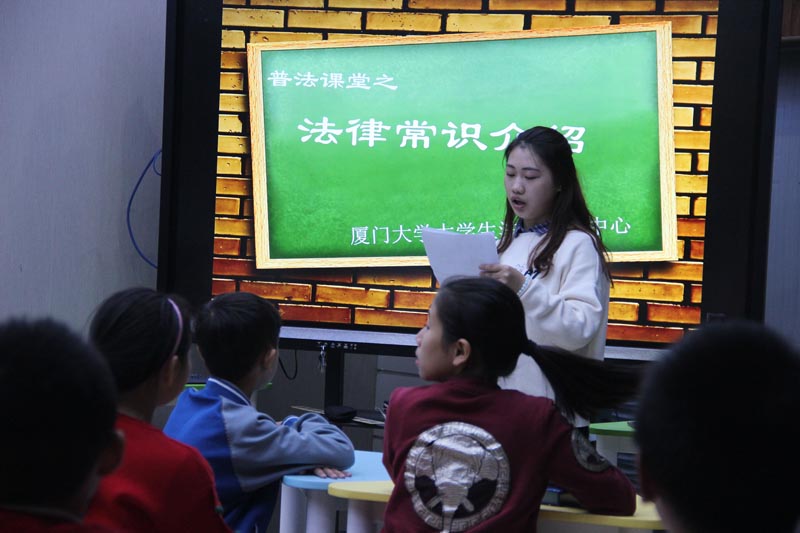 “厦门大学社科普及走进曾厝垵——演武二小青少年法治课堂” 由厦门大学社科处、yl8cc永利官网、厦门市思明区滨海司法所、曾厝垵社区及演武第二小学共同主办,由厦门大学大学生法律援助中心承办,在12.4 国家宪法日来临之际,贯彻落实十九大全面依法治国的基本方略,深化依法治国实践,加大全民普法力度,建设社会主义法治文化,树立宪法法律至上、法律面前人人平等的法治理念。本学期法治课堂第一次授课于12月1日下午四点在厦门市第二演武小学多媒体教室正式启动。