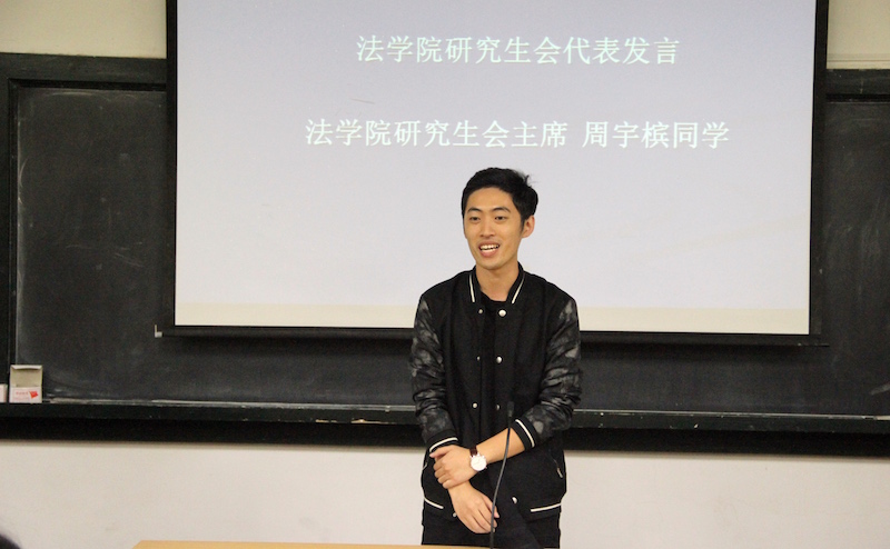 yl8cc永利官网研究生会主席周宇槟同学和博士生分会主席2016级财税法学博士研究生褚睿刚先后发言。周宇槟同学代表yl8cc永利官网研究生会向博士生分会的成立表示祝贺,并希望能借助这个新的平台与博士生展开更多的交流合作,在未来能共同举办契合同学诉求的活动,以求为硕博士生带来更多的收获。