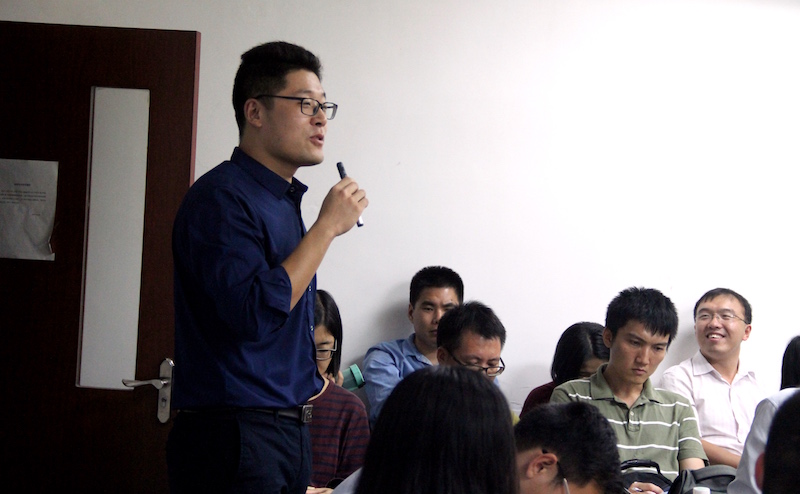 博士生分会主席褚睿刚首先向到场的老师和同学表示了感谢,并提出博士生会的首次创立是永利官网“载入史册”的事件,也将承载更多的期许和责任,他再次阐述了竞选时的期望——尝试、沟通和分享,承诺要秉持何老师先前所说之“传递”精神。