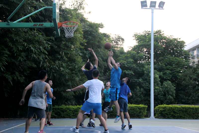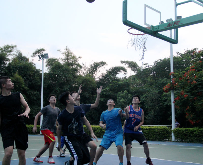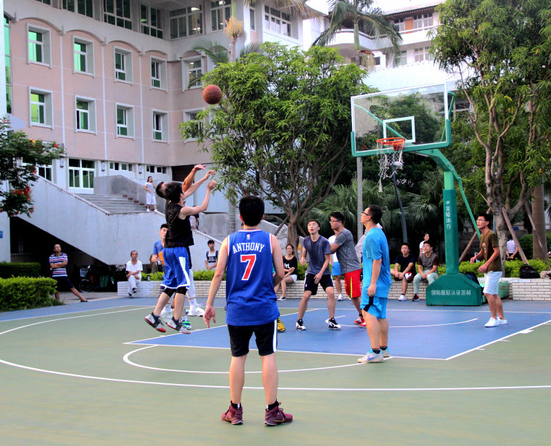 在体育部的组织下,2016级和2017级的研究生们提前来到海滨篮球场进行热身训练,此时户外温度适宜,对于比赛来说,再适合不过了!体育部提前对这次比赛进行了宣传,很多女生也到场为自己喜爱的队伍加油助威。场地四周聚满了前来观看比赛的同学,现场气氛轻松而热烈。