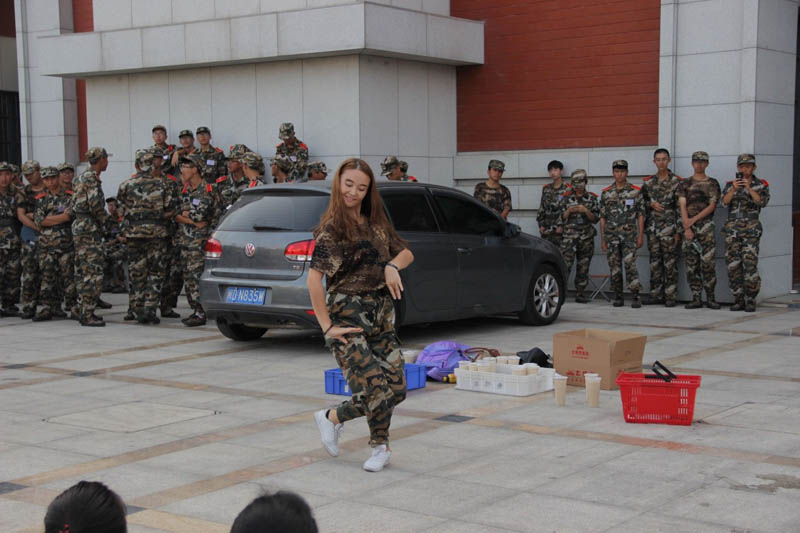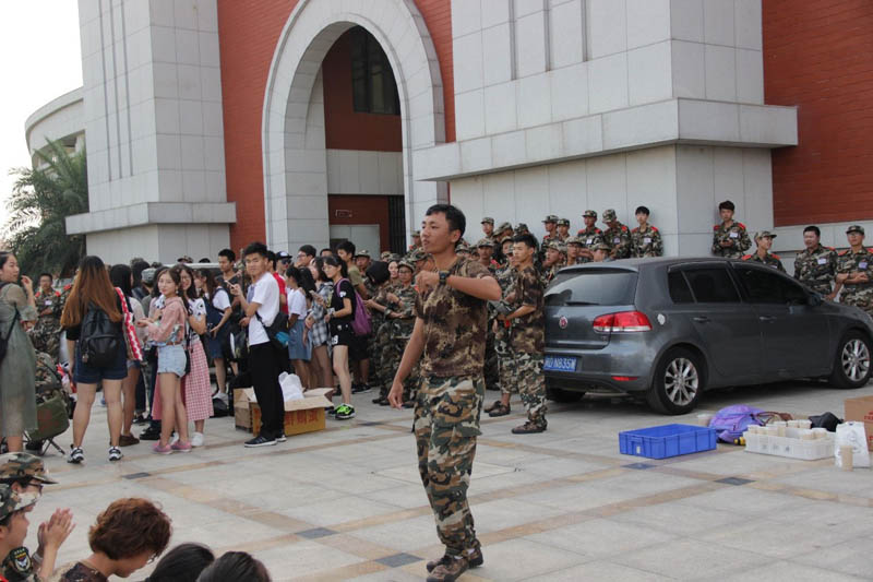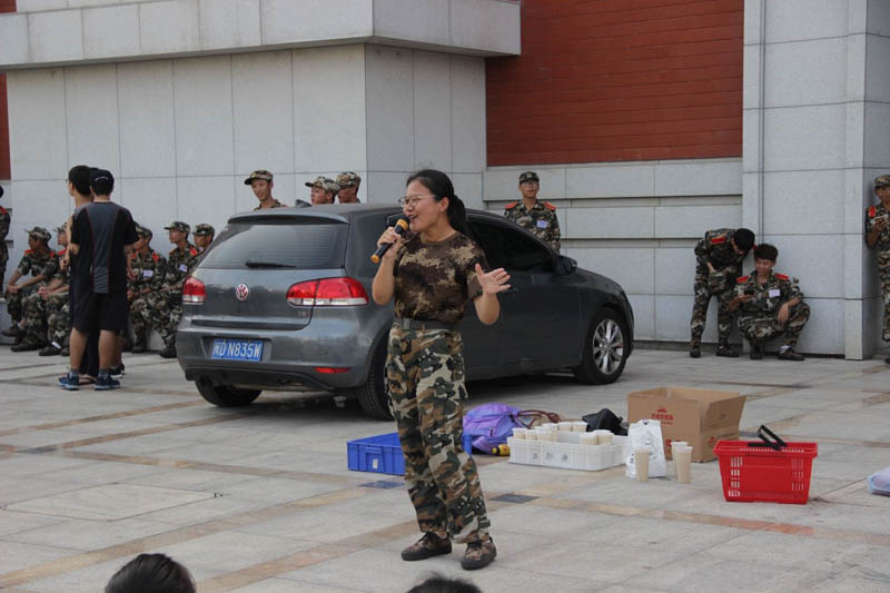 慰问一行人随后为同学们分发饮料与零食,犒劳辛苦训练了一周的同学们。