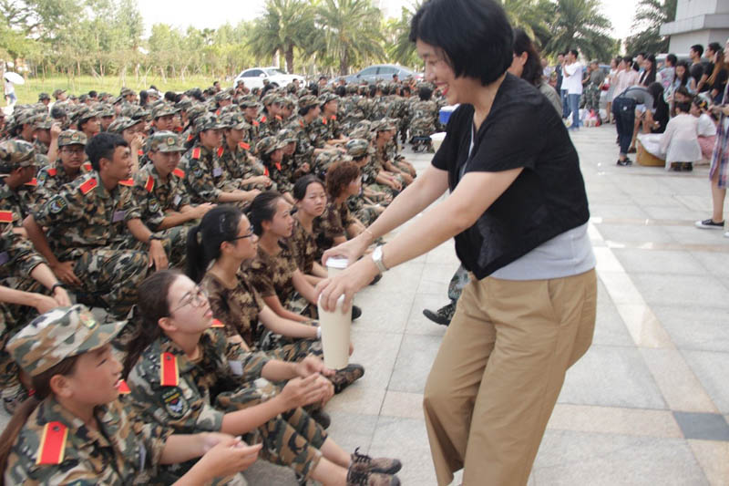 慰问正式开始,院长宋方青教授首先发言,言语中流露着对同学们的关切之情。她嘱咐同学们注意身体健康,继续遵守纪律、坚持训练,争取圆满完成剩余一周的军训任务。同时,她也表示,自己深深地为同学们表现出的青春活力所感动,并希望同学们继续保持这样的良好状态。