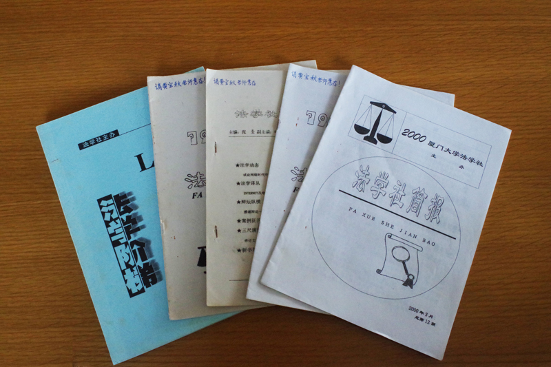 林浩夫律师对同学们的来访表示热烈欢迎,并简单介绍了天衡律师事务所的情况。同学们则特意带来林律师当年负责主编的第12期《法学阶梯》及4期《法学社简报》。当林律师看到这些珍贵历史时,惊喜之情溢于言表。回忆起20世纪初的刊物是活字印刷制作,社团同学收到散发着油墨香的纸张时的兴奋之情,林律师至今都记得当时的同学们为能够在学术刊物上发表一篇属于自己的文章而感到自豪。