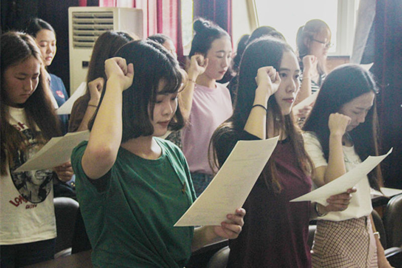 紧接着,全体新生在《诚信承诺书》签下了自己的名字,并在2017级硕士研究生罗骞的带领下宣誓。