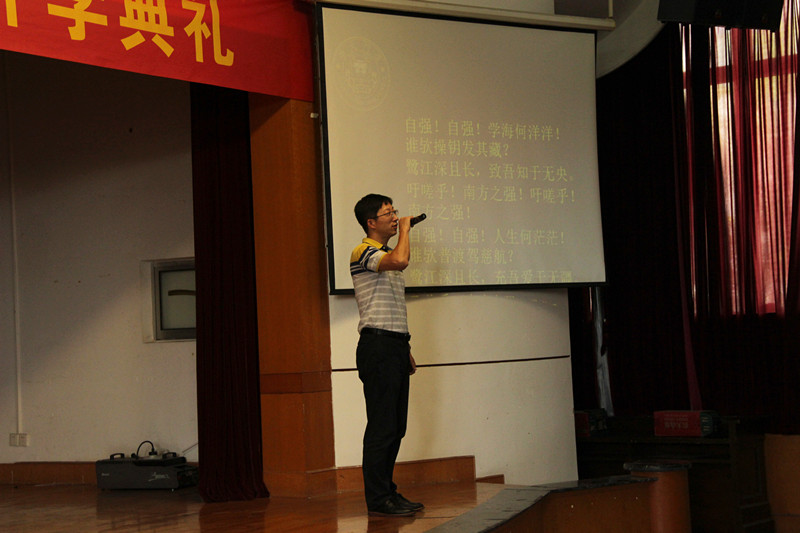 开学典礼的最后,全体起立,在团委书记高斌的领唱下合唱校歌。至此,2017级新生开学典礼圆满结束。