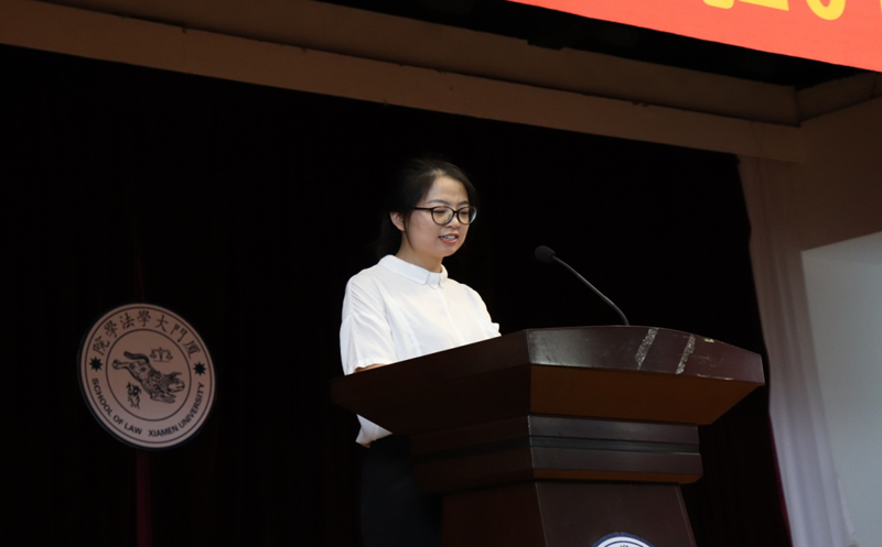 开学典礼进入第四项议程,学生代表发言。首先,2016级刑法专业博士研究生黄罕敏同学代表老生欢迎学弟学妹的到来,她回顾自身学习生活中的宝贵经历,从“良善”的角度出发,鼓舞大家不辜负大学的青春岁月,用数载光阴实现自我的突破。