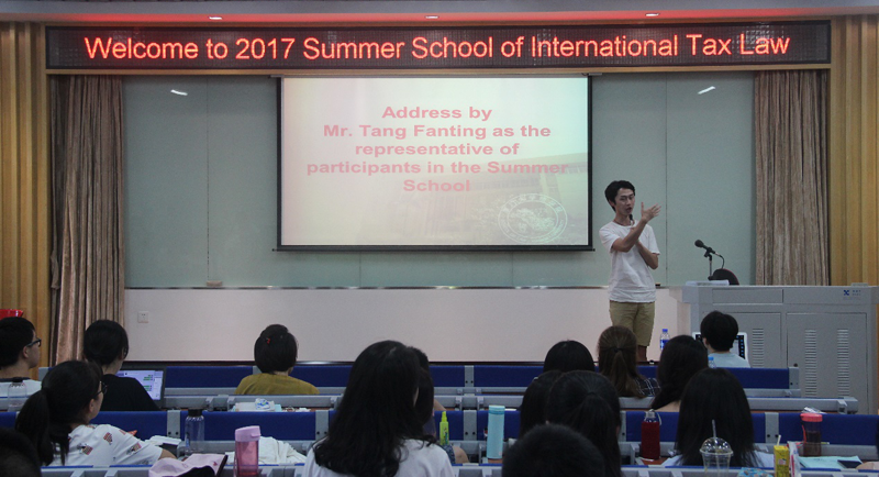 学员代表唐凡霆同学在发言中表示,他在短暂而又充实的暑期班里既收获了丰富的知识,也收获了真诚的友谊,更是爱上了厦门这座美丽的海滨城市。他一一感谢了每一位老师的精彩授课和耐心讲解,也感谢yl8cc永利官网以及国际税法与比较税制研究中心为学员们提供了良好的交流学习机会。