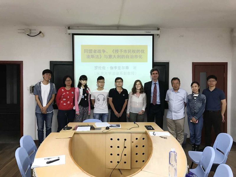 最后,徐国栋教授对本次讲座做出了总结并发表自己的看法,以及带头提出了一些问题,与会学生亦提出了一些问题,由徐国栋教授翻译。主要问题有:《优流斯法》之前的自治市和之后的自治市之间有哪些区别?罗马公法的变革对罗马私法有哪些影响以及如何影响,一般意义上的和《优流斯法》特殊案例层面上的?意大利为何未曾成为一个行省?拉丁人和意大利人区别何在?有无种族歧视的问题?自治市与罗马的关系能否类比中世纪的国王和封建领主之间的关系?8-10个新部落到底维持多久?Lorenzo Gagliardi教授对这些问题一一作出了解答。讲座在融洽温馨的氛围中圆满结束。