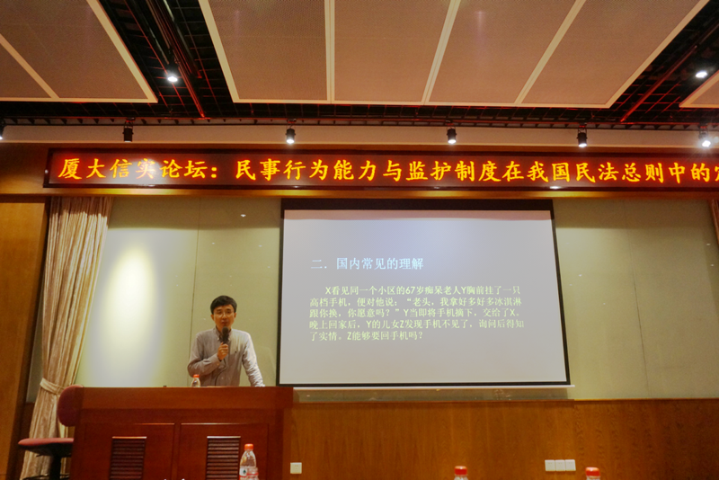 2017年5月19日晚,永利官网与福建联合信实律师事务所合作举办的厦大信实论坛,非常荣幸地邀请到南京大学法学院解亘教授,于yl8cc永利官网B138教室分享了一场以“民事行为能力与监护制度在我国民法总则中的定位”为名的精彩讲座。