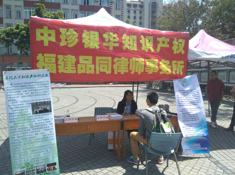 中珍银华(北京)知识产权代理有限公司、福建品同律师事务所也派出律师代表在现场设立法律咨询,为来往的同学们就关于知识产权方面的法律问题提供咨询。