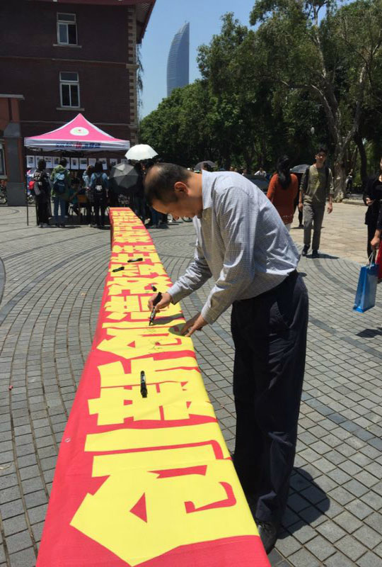 本次园游会由厦门大学法学社和厦门大学知识产权研究院共同承办。组织方精心设计出 “辨别真假商标”、“看书名猜作者”、“知识产权问答”、“商标名称知多少”等趣味游戏供广大师生参与,并通过摆放展板,散发传单、书签等形式供来访者了解知识产权基本常识,推广知识产权远程教育课程。同时,近百名师生在横幅上签下自己的名字,加深对今年的知识产权保护日主题“创新创造改变生活,知识产权竞争未来”的认同与印象。