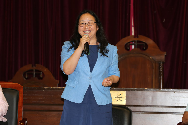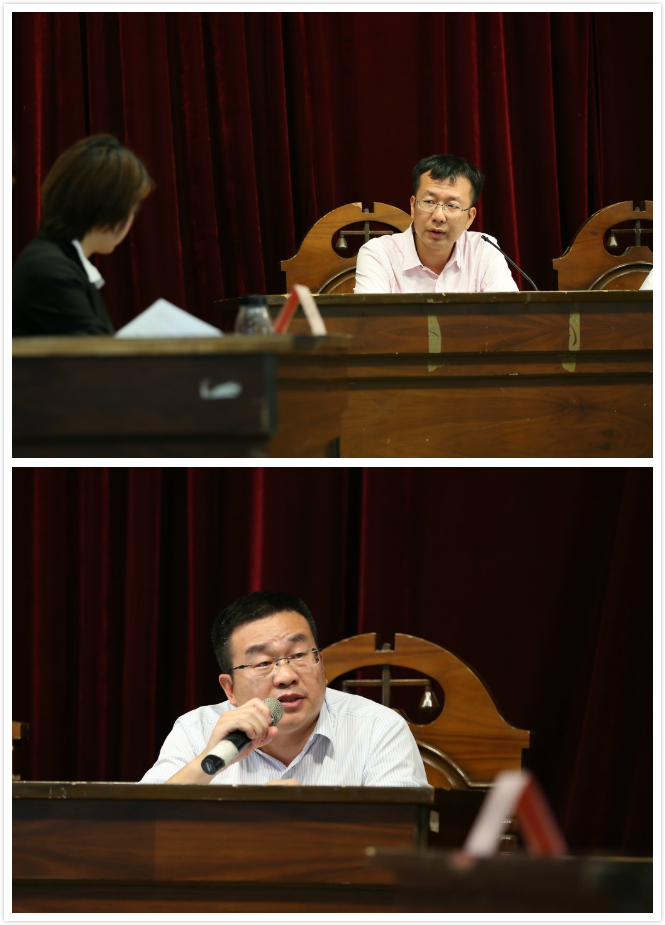 短暂的中场休息后,本届比赛的最大亮点,赛事研讨会拉开帷幕。研讨会由yl8cc永利官网副院长李兰英教授主持,除了五位决赛评委外,yl8cc永利官网法理学教研室教授周赟、刑法学教研室助理教授郑金火、武汉大学法学院团委书记杨辉、福州大学法学院老师蒋凌申和李辞一同上台参与讨论。